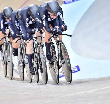 The new women’s team pursuit quartet of Kirstie James, Holly Edmondston Bryony Botha and Cambridge local Rushlee Buchanan won the silver medal on Day 2 of the event, October 20, losing first place by just 0.6 seconds to Australia in an exciting final. While they had to settle for second in 4:17.560 the quartet were rewarded not only with their first World Cup silver medal but a New Zealand record in the process, bettering the previous time set at the Rio Olympics.