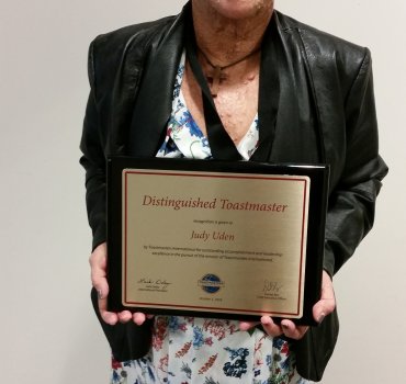 Judy Uden started attending Toastmasters in 2003 and has just achieved its highest award – the Distinguished Toastmaster Award.