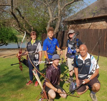 Local archers Christine Finnegan (Veteran Women’s Bowhunter Recurve), Dennis Bryce (Veteran Mens Bowhunter Recurve), Gerry Newman (Veteran Mens Bowhunter Compound), Cyrille Leveque (Mens Longbow) and Andrew Syme (Junior Mens Freestyle Unlimited Compound) competed in the 16-strong Black Arrows team at the event in Potchefstroo, South Africa, with the Kiwi team totalling four gold, two silver and two bronze medals.