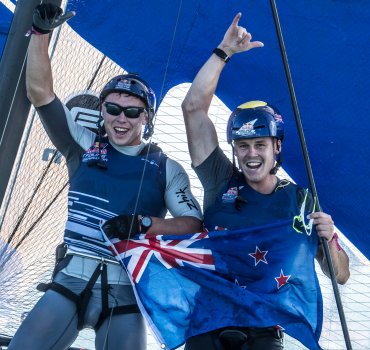 William McKenzie (left) and Isaac McHardie are now world champions after winning the 2018 Red Bull Foiling Generation World Final.