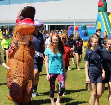 The whole-school event saw students and staff walk the school track for an hour to raise funds for the Cancer Society.