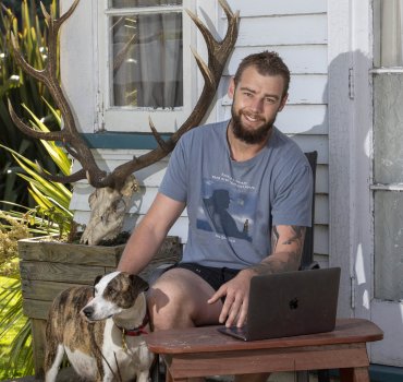 Keen hunter Michael Cornelius, pictured with his dog Blaze, is the first in the Matangi/Tamahere area to connect to the new ultrafast broadband.