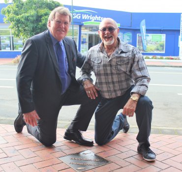 The numerous international successes of Cambridge sportsman Doug Mienie (right) were recognised this month when Waipa Mayor Jim Mylchreest (left) revealed a new Walk of Fame star on Duke St.