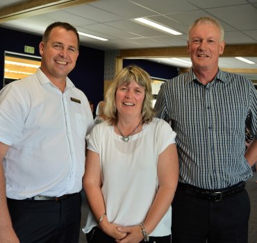 Maree Woodall at her school farewell, flanked by current Cambridge East principal Hamish Fenemor (left) and former school principal John Bullick.