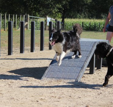 Already a dozen or so dogs could be seen playing around the course on Friday morning, with a few more experienced agility runners weaving and diving through the eight different obstacles.