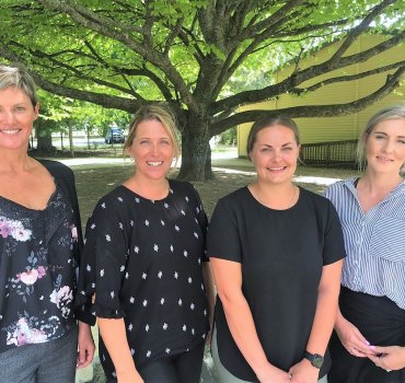 The team steering a world-first at Leamington Primary. They are, from left, RocheMartin’s New Zealand trainer Mary-Anne Murphy, Leamington Primary associate principal (junior) Tonia Fenemor, Leamington Primary teacher Rebecca ‘Becs’ Paulsen, and Leamington Primary associate principal (senior) Mel Martin.