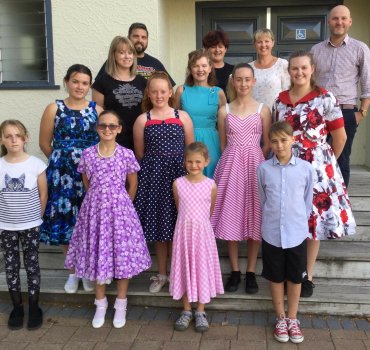Juniors from the Cambridge Cruisers Rock n Roll Club will compete at the Rock n Roll Junior Nationals next month. Pictured is, from left, front row: Katie Bowler, 10, Camille Pivott, 10, Molly White, 7, Tristan Pivott, 11. Middle row, Abbie Crow, 17, Zarah Higgins, 12, Ashleigh Hjorth and Zarah Armstrong, 17. Back row: some of the parents and coaches, Anna Hastings, Colleen Ryan, Jared Pivott, Hilary Crow, Sue Keating and Brad White.