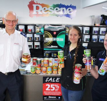 The Cambridge store collected 229 cans of food for the Salvation Army Cambridge Corps. 851 cans were also collected by the Cambridge “Sallies” from Resene paint stores around the district, including Morrinsville (144), Matamata (396) and Te Awamutu (311).