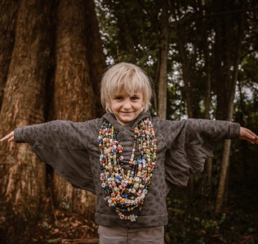 Reef Smith pictured with his Child Cancer Foundation Beads of Courage, each bead representing a treatment.
