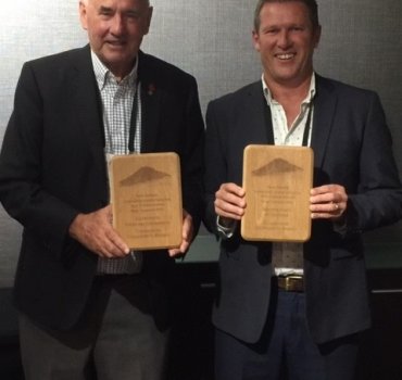 Mike Pettit (right) and John Bishop with the Cambridge Community Board’s two latest awards.