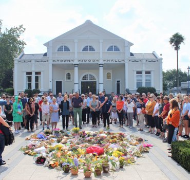A quiet crowd gathered outside the town hall on Friday, March 22 to mark one week since the Christchurch terror attacks.