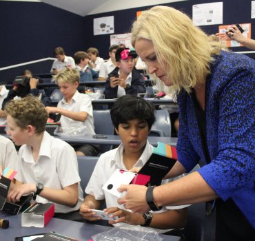 Upston showed students how smartphones could be turned into a virtual reality device, simply by popping them into a basic, low cost headset created by Spark. Upston left several headset packs with the school so students could continue to explore parliament.