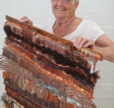 Ann’s hand-woven wall hanging, Strata, is an artistic imagining of a slice through the earth’s geological layers.