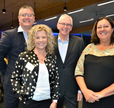 Pictured at this month’s First Retail meeting in Cambridge are, from left, First Retail Group CEO Chris Wilkinson; First Retail Group general manager (client relations) Lorraine Nicholson; Waipa District Council economic development manager Steve Tritt; and Cambridge Chamber of Commerce CEO Kelly Bouzaid.