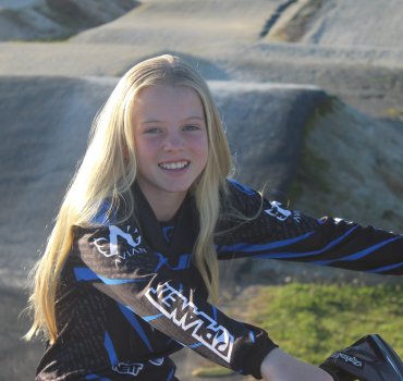 Lily Greenough at her home track, the Cambridge BMX Club.