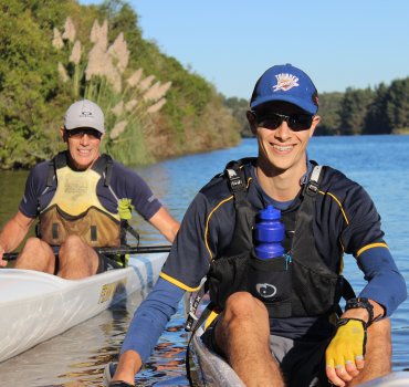 Eight-time Maunga Mission competitor Patrick Foley (left) and son Jack Foley (right) will race 72km by bike, foot and surf-ski when they compete in the Maunga Mission on May 26.