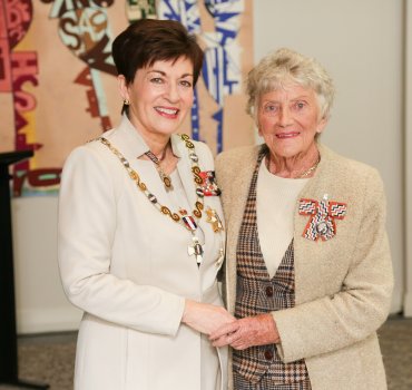 Florence Shearman, QSM, pictured with New Zealand’s Governor-General, Dame Patsy Reddy.