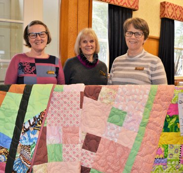 Members of the Cambridge Patchwork Group – Dianne Murphy, Margaret Jalil and Shelley Liddy – with some of the quilts going on display this weekend.