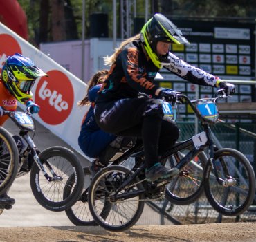 Leila Walker leads the way during the qualifying motos at the UCI BMX World Championships in Belgium. Photo – Nico van Dartel.