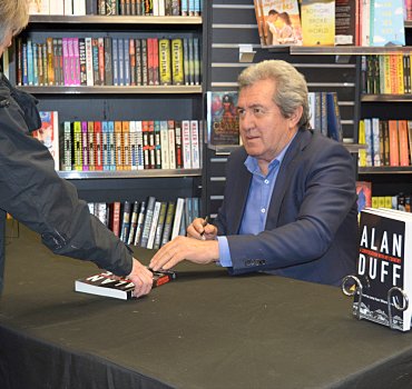 Author Alan Duff signing a copy of his latest book at Paper Plus Cambridge.