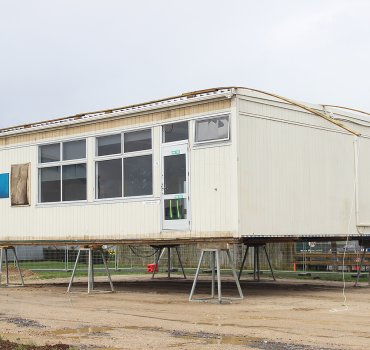 One of nine temporary classrooms arrived on site at Cambridge High this month.