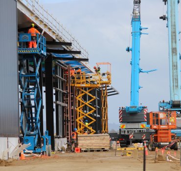 There are anywhere from 150 to 200 workers on site daily, now over halfway through the steel framing and nearly completing the 450m by 110m floor.