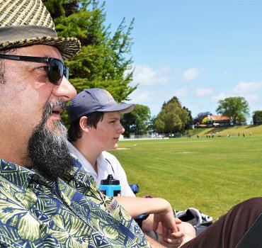 Aksel Bech, with son Murdoch, watch cricket at St Peter’s School.