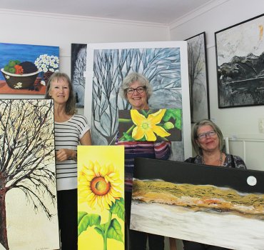 Lea Woutersen, Ineke Zegwaard and Ineke Matthys with some of the pieces they will feature at the Cambridge Society of Arts’ Annual Art Exhibition this weekend.