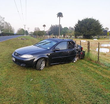 The incident followed another crash further north on Ohaupo Rd only two days earlier. A car ploughed through a post and rail fence and came to a stop when it hit a tree on a front lawn. No injuries were reported.