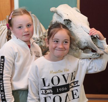 IMG_3775 Chantal Taylor (right) with the cow skeleton she spent three months building with her dad Will and sister Lucia (left).