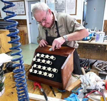 Work is completed to re-fit one of the organ console’s stop jambs. Photo: South Island Organ Company.
