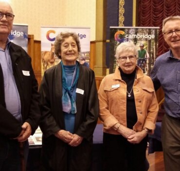 The event was hosted by Destination Cambridge CEO and chairman respectively, Miff Macdiarmid and Philip Coles. Guests included some of the original board members from around 2000 when the then Information Centre became an Incorporated Society, among them Rosemary Hill, Kevin Burgess, Rob Feisst, Joe Scaramuzza, and Win Bills. Most of the seven managers who have steered the organisation over its two decades were also there – Liz Stolwyk, Jenny Wilson, Maree Kaati, Rebecca Foy and Roger Gordon. Unable to attend was Amanda Hema (nee Scott).
