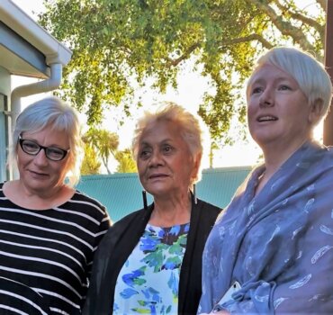Two former managers of Cambridge Community House, Nicki de Reus, left, and Kiri Gray, with the current manager Harriet Dixon, at this month’s opening of the new CCH building.