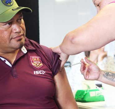 Ikimoke Tamaki-Takarei gets his first Covid vaccine.