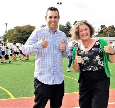 The sprawling turf will be used for sport and as a play area for the children. Students from Hamilton’s Sacred Heart Girls College were there on the day to give a demonstration of a variety of sports that can be played on the turf.