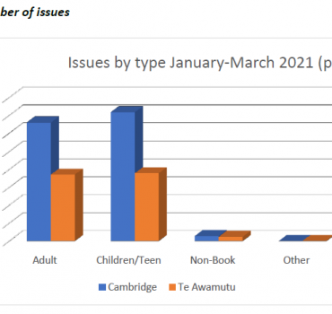 From January 1 to March 31, Cambridge Library issued 70,680 books compared to Te Awamutu’s 38,537.