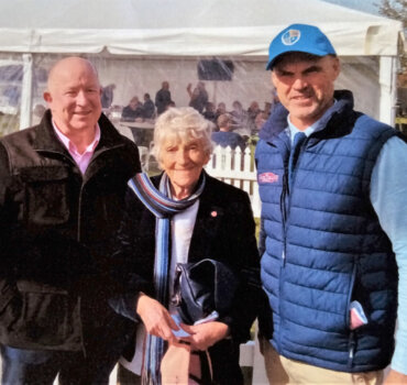 Cambridge racing fan Florence Shearman flanked by NZTR chief executive Bernard Saundry, left, and Cambridge Jockey Club CEO Mark Fraser-Campin.