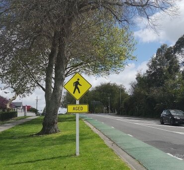 “The ‘Aged’ sign is part of Waka Kotahi NZ Transport Agency’s family, a council spokesperson said.