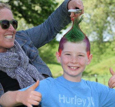 Tommy had been growing his hair since Anne’s accident and collaborated with her on the idea of chopping his locks into a series of awful and outlandish styles to raise money for the rescue helicopter.