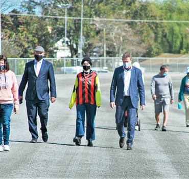The walkers were joined by Cambridge Jockey Club chief executive Mark Fraser-Campin, and representatives of various organisations. The crowd was entertained by the Cambridge Rotary band, The Bruised Brothers.
