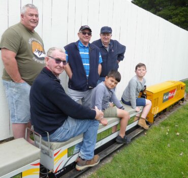 Cambridge Model Engineering Society members, from left front, Allen Edwards, Eli Taia, 7, and Cody Casey and back, Bruce Casey, Ron Crisp and Neil Milham.