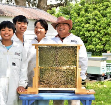 They’re the founders of Waipā’s Marcel and Sons Honey. Selling multiflora honey is their thing, but they also rear and sell queen bee cell or mated queen bees and offer a pollination service. More recently they have started selling beeswax wraps and candles.