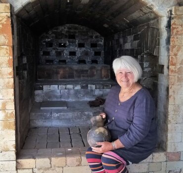 Janet would like to fire the kiln at least twice a year, but Covid has stalled the programme. Each firing involves a workshop-type visit to her property by up to 12 other potters who share in the congeniality of the process. They bring their pots for firing, camp out, talk pottery in Janet’s lovely old dance hall and take shifts in manning the kiln. After about a week, the kiln has cooled enough to be opened.