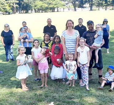 Nina Parker, centre front, with her family and their socially distanced friends and supporters.