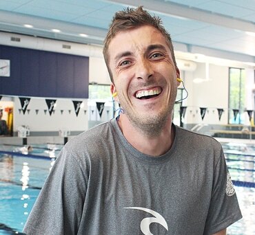 Joseph Leet is another regular pool user. He has cerebral palsy but now with the help of caregiver Cody Brown can change in the accessible room rather than at home.
