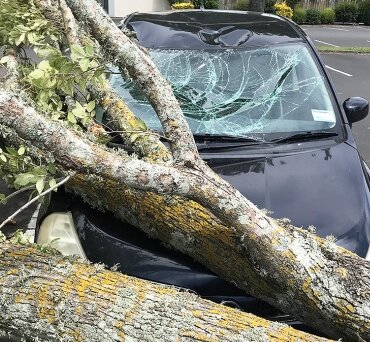 A car parked in Waipā District Council’s Hally’s Lane Carpark sustained considerable damage when this tree fell on it during the storm.