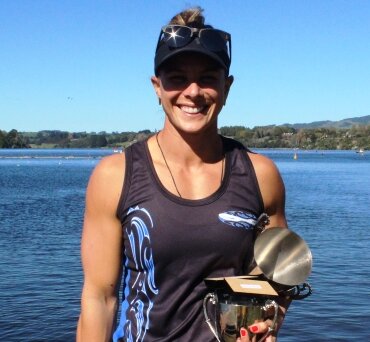 - Dame Lisa Carrington with her spoils at Lake Karapiro.