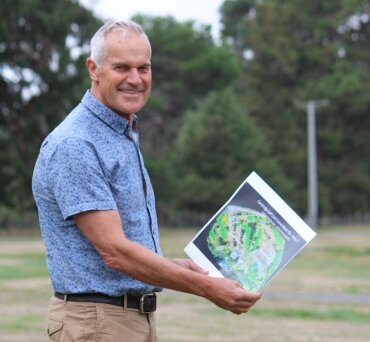 All go for development: Cambridge Golf Club development committee chair Neil Gibb on the present driving range which becomes housing under the new plan.