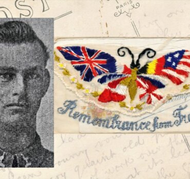The silk embroidered postcards were sent by the Armer brothers to their loved ones in Cambridge in 1917. The notes from France have been beautifully preserved by the Tihema family and are on loan to Cambridge Museum during April as part of Anzac commemorations.