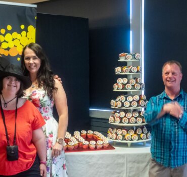 At a recent Enrich Plus client celebration in Hamilton, l-r Colin Long, Jasmin Khan (staff), Tracey McRoberts, Joshua Buchanan.